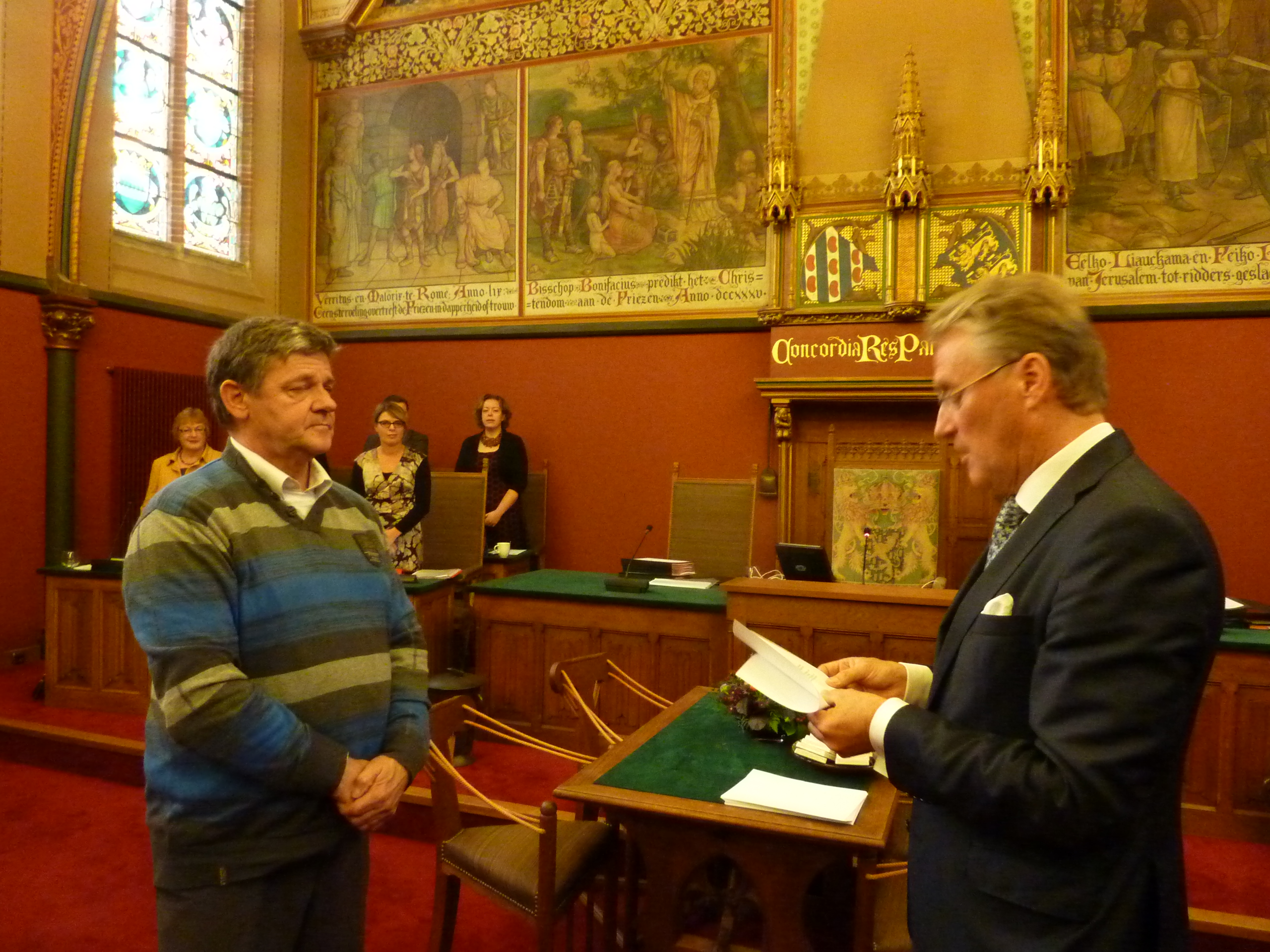 Daarna werd Joop van der Heide als nieuw GrienLinks Statenlid geinstalleerd. Zie hier zijn installatie.